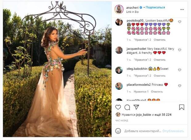 Известная модель Ана Чери показала, как выглядят ее сны На фото Ана показалась в прозрачном платье с рисунками цветов. Звезда не стала надевать белье, развернувшись спиной, чтобы скрыть от камеры бюст. А ягодицы прикрывали рисунки цветов, которые не позволили показать самое пикантное. Но это не помешало стать снимку очень завораживающим и горячим.