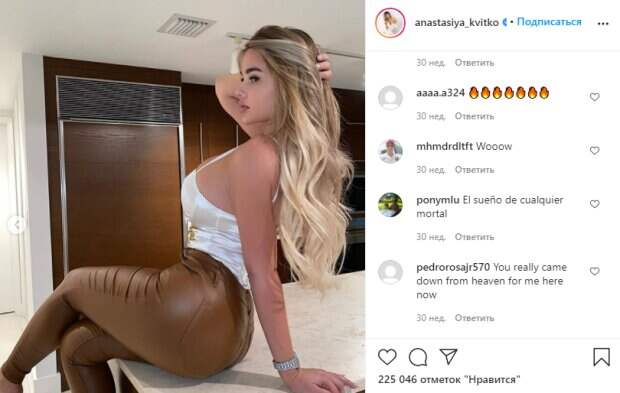 Знаменитая российская модель Анастасия Квитко, более известная как русская Кардашьян, едва удержала формы в одежде Популярная модель всегда выставляет напоказ свои достоинства. И это не удивительно, ведь девушка работает представителем известных брендов одежды и их онлайн-магазинов. Поэтому она постоянно показывает в Инстаграм пикантные фото, ведь также не скрывает бюст в смелых образах.