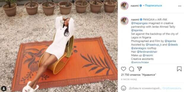 Не так давно Наоми приняла участие в модном показе, проходящим прямо на улице. Вместе с Беллой Хадид и другими красавицами, Наоми покорила необычным платьем, полностью расшитым блестками. Черный наряд в пол полностью скрыл тело Наоми от лишних взглядов, однако приталенный силуэт подчеркнул стройность изгибов. В милых объятиях со стилистом и близким другом, Кэмпбелл покорила позитивным обращением: «Поздравляю моего mr_carlos_nazario. И еще, 40 лет со дня рождения Майкла Корса!». Поклонники сразу ответили: «Наоми богиня; ваши объятия особенны; мне нравится ваш лук, это так красиво; Лихо! Взяла в плен взглядом; это лучше романтики; вы цветущая роза