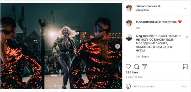 На этот раз певица поделилась новой серией фотографий с выступления. На снимках Миша в экстравагантном открытом боди со сверкающими камнями, которое отлично показывает её идеальные формы. Девушка сообщила, что эти фотографии сделаны на её концерте в Мариуполе. Поклонники завалили певицу приятными словами в комментариях: "Проверено, я одержима тобой", "Огонь", "Счастливые глаза", "Тебе так к лицу сцена", "Красивая", "Какая мадам". Ранее сообщалось, подруга Макса Барских Романова засветила лишнее в бесстыжем декольте: "Красиво ты вошла в мою грешную жизнь" Также, подруга Макса Барских Романова в купальнике с экстремальным вырезом устроила жару в день рождения: "Девочка-огонь" Politeka рассказывала, "Прям Джей Ло": подруга Макса Барских в слишком коротком платье потрясла видом за кулисами "Співають всі"