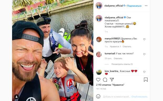 Так, на снимке Яма позирует со своей женой Лилией, сыном Леоном и приятелем. До этого они катались на гироскутерах, поэтому на фото все выглядят довольными, но немного уставшими. Яма довольно щурится, глядя в камеру, и показывает язык. «Ох и покатались!!! Счастья - полные штаны!) Хотим ещёёёёё!», - подписал снимок танцор. Его поклонники тут же принялись комментировать фото. «Жена у вас просто красавица», «Классные», «Приятного веселого отдыха», «Красота», «У вас так тепло?», - пишут люди. Ранее мы писали, что Яма показал кадры, на которых катается со своим сыном Леоном, а рядом с ними на отдельном водном мотоцикле плавает и жена Влада Лилия. При этом, все трое счастливо улыбаются и явно веселятся. В начале видео кто-то за кадром интересуется у Ямы: «И как жизнь?». На это танцор радостным голосом отвечает: «Удалась!». Напомним, довольный Яма из "Танців з зірками" засветил загорелые ножки жены во время водных забав: "Жизнь удалась!". Как сообщала Politeka, Влад Яма из "Танців з зірками" ошеломил пикантным фото жены-именинницы: "Сколько там тебе...". Также Politeka писала, что Влад Яма из "Танців з зірками" показал свои "ночные делишки", блеснув мускулами: "Для полного счастья. ..".