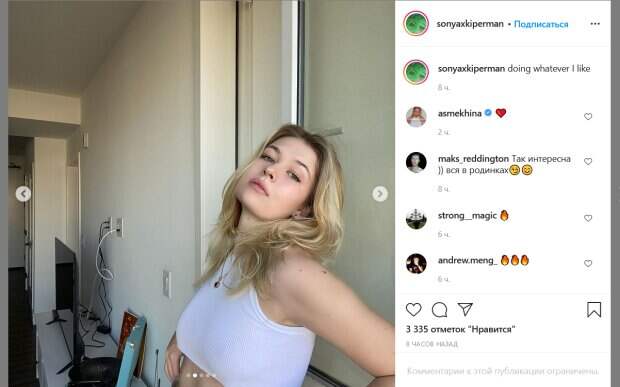 Она позирует перед камерой в коротком белом топике, под который не стала надевать лифчик. На лице красотки минимум косметики, а ее волосы свободно спадают на плечи. Благодаря этому Соня может похвастаться своей природной красотой. Девушка томно позирует перед камерой, выгибая спину. «Делаю, что захочу», - подписала кадры Соня. Ее подписчики тут же отреагировали на новый пост девушки. «Так интересна)) вся в родинках», «Боже, восхитительная», «Ты такая красивая», «Клёвая», «Зачем такие позы неестественные? Ты прыщи на спине давишь?», - пишут люди. Отметим, что несмотря на свой юный возраст, Соня успела состояться как модель и даже дебютировала как актриса. Она учится в США и периодически наведывается в гости к звездной маме. Красотка активный пользователь Instagram, где часто делится с поклонниками яркими публикациями о своей жизни. Напомним, юную дочку Веры Брежневой в кружевах и с задранной ногой перепутали с мамой: "40+ дама...". Как сообщала Politeka, дочки Брежневой превратились в настоящих моделей, впечатлив певицу своим видом: "Мамина гордость". Также Politeka писала, что юная дочь экс-ВИА Гры Брежневой без лифчика удивила развязной позой: "Сначала подумала, что Вера. ..".