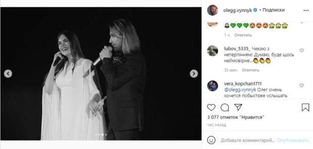 На кадрах, которыми поделился Олег, он держал юную протеже за руку, они оба счастливо улыбались. "Друзья, одна из интриг раскрыта! Чуть больше года назад я познакомился с очаровательной девочкой, талантливой вокалисткой - elina.ivashchenko_official, которая впоследствии стала победителем "Х-фактора" и "Славянского базара". И сегодня я хочу поддержать ее на музыкальном пути. На моем концерте в Броварах состоялась live-премьера нашего с Еленой дуэта. Ждите студийную версию композиции "Бриллианты"