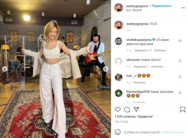 Так, блондинка из "ВИА Гры" покрутилась перед камерой в широких светлых джинсах с завышенной талией, крохотном топе молочного оттенка и накинутом на плечи легком жакете. На некоторых снимках красотка изумила ракурсами, расставив широко руки и блеснув аппетитным декольте - в этом плане Ксения не отстает от своих знаменитых предшественниц из "ВИА Гры". В подписи девушка оставила только дату: "10.03". Изумленные пользователи кинулись комментировать увиденное и гадать, что это могло бы значить: "ой, какая девочка красивая" "Новая песня?" "С наступающим праздником весны" "Какая красивая