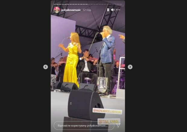 Напомним, что в одном из эфиров шоу "Маска" Полякова назвала Кароль "известной плакальщицей на похоронах", что Тина восприняла как личную обиду (у певицы от рака умер муж). Позже Полякова публично извинилась перед Кароль и сказала, что имела в виду лишь печальный репертуар Тины. Чуть больше чем через неделю Кароль выпустила необычный для себя хит "Скандал". Конфликт между двумя девами шоубиза еще долго не утихал, однако сейчас, кажется, певицы пошли на примирение. В своем Instagram Оля Полякова рассказала, что вместе со старшей дочерью Машей побывала на концерте Андреа Бочелли, который состоялся 24 августа. На концерте вместе с известным итальянским оперным певцом выступили известные украинские певицы, в том числе и Тина Кароль. Полякова опубликовала stories, где показала Тину, которая поет вместе с Бочелли, и написала, что Кароль "Богиня". Ранее Politeka писала, что Кароль разозлила украинцев, выйдя на сцену с песней Кузьмы Скрябина: "Кто дал ей разрешение?". Напомним, что Полякова зажгла на концерте перед Днем Независимости в экстравагантном наряде: "Я королева ночи". A еще Politeka сообщала, что как фигура 37-летней Поляковой выглядит на самом деле, известный продюсер выложил кадры с яхты: "все, хватит! ".