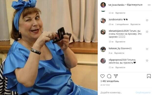Известная актриса Татьяна Кравченко, которая прославилась благодаря роли в сериале «Сваты», показала себя во всей красе Как пишет Politeka.net, на фан-странице Кравченко в Инстаграм появилась яркая фотография актрисы. Кравченко была одета в яркое шелковое платье. На голове у нее был повязан бант в тон костюму.