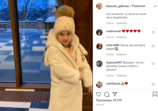 Гарри же надевал темную дубленку. Пока дети одевались, Лиза начала воображать и устраивать показательные выступления для родителей. Она деловито представилась и начала представлять по имени и отчеству своих отца и мать. Засветилась в видео и Алла Пугачева, которая влезла в видео и помахала поклонникам. «Красоточка», - подписали видео на фан-страничке Лизы. В комментариях бойкой дочке звездной четы оставили массу приятных слов. «Мне от Ваших деток кайфово, всегда улыбаюсь. Хорошики», «Единственные дети знаменитостей, на которых хочется смотреть, естественные, воспитанные, милые детки», «Милые детки, выросли в любви, где нет зависти и злобы», «Галчата-пугачата! Такие милые!», «Лизок, как всегда в ударе!», - пишут пользователи сети. Напомним, что талантливые дети Пугачевой и Галкина порадовали папу, получив необычные подарки: «У Лизы поскромнее…». Как сообщала Politeka, Галкин показал вечер развлечений с сыном, впечатлив движениями: «Папа очень пластичный». Также Politeka писала, что Галкин показал, как его балует любимый сыночек, Пугачевой ничего не досталось: «Маму не пригласили?».