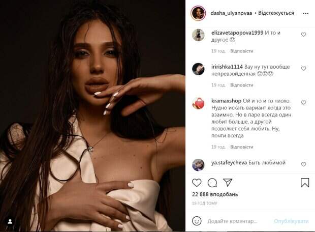Победительница "Холостяк-10" с Максом Михайлюком Даша Ульянова ошеломила соблазнительным чувственным образом Как передает Politeka.net, 24-летняя красотка опубликовала свежее фото на своей странице в Инстаграм. Ульянова позировала в светлом пиджаке, который она скинула с одного плеча, обнажив при этом частично грудь.