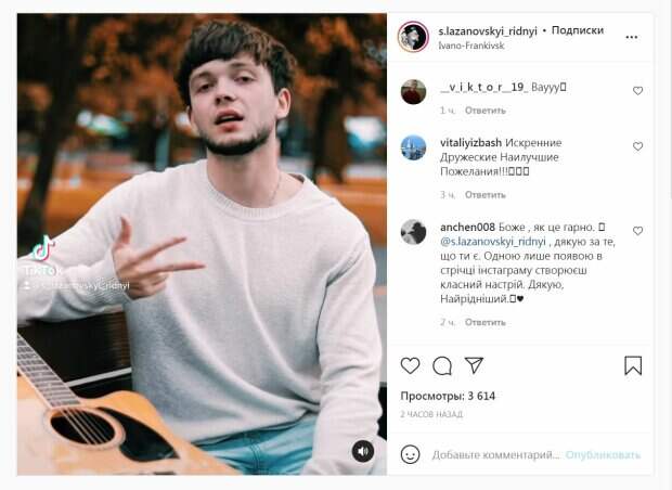Певец позировал на лавочке с гитарой. "Заболел тобой, ты моя простуда, поднялась в теле температура", - спел исполнитель, объявив на всю страну о своей "болезни". "Снимайте в ТикТок атмосферные видосики под эту песенку ❤️ ", - написал Лазановский. За час публикация собрала более 3000 лайков и много комментариев. "Ваууу как нежно