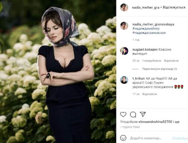 На одной из таких, как сообщает портал Politeka, появился невероятно будоражащий кадр. "Софи Лорен!!!", - первое, что воскликнули поклонники. А ведь и правда, глядя мельком на фото, сразу и не узнаешь Надежду, - не иначе, в кадре мировая знаменитость, итальянка Софи Лорен. Однако нет, это украинская певица Надя Мейхер. Для такого роскошного кадра Надя облачилась в очень соблазнительный наряд с бездонным декольте. "Дыньки" певицы так и просятся наружу. Соблазнительный образ дополнила косынка, повязанная на голову как носила Софи Лорен. Взгляд, украинская знаменитость, отвела, демонстрируя мейкап в стиле 60-х. Фолловеры не выдержали, они написали: "Ай да Надя!!!! Ай да краса!!! Софі Лорен українського походження