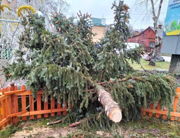 В Ровенской области из-за сильного ветра упала новогодняя елка, установленная в поселке городского типа Квасилов. Фото ЧП в воскресенье, 19 декабря, опубликовали местные коммунальщики. Елка упала в первое половине дня, но уже после обеда дерево установили еще раз, на этот раз, закрепив его более прочно.