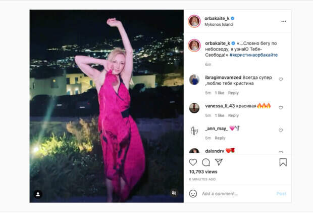 На этот раз Кристина поделилась новым видео. На кадрах она в розом платье с декольте и разрезом, который показывает отличную фигуру девушки, а юбку платья развевает по ветру. Сейчас Кристина находится на отдыхе на острове Миконос, в Греции. "Словно бегу по небосводу, я узнаю тебя свобода", процитировала свою песню певица. Поклонники засыпали артистку приятными словами в комментариях: "Всегда супер, люблю тебя, Кристина!", "Красивая", "Шикарная", "Фигура - огонь. Это мама троих детей, настоящая мама. Без всякого суррогата", "Какая вы умница! Сохранить такую фигуру, быть такой умной без выпячивания своего я, быть чудесной актрисой, мамой и дочкой..Это талант! Это сила духа! Это любовь к жизни!", "Очаровательная, восхищаюсь". Ранее сообщалось, дочь Пугачевой Орбакайте засветилась в компании известного красавца: "Прямо идеальная пара" Также, Орбакайте "подловили" в объятиях мужа Пугачевой Галкина: "Максим сделал всех счастливыми" Politeka рассказывала, дочь Пугачевой Орбакайте не узнали на детском фото, как выглядела будущая звезда: "Похожа на папу"