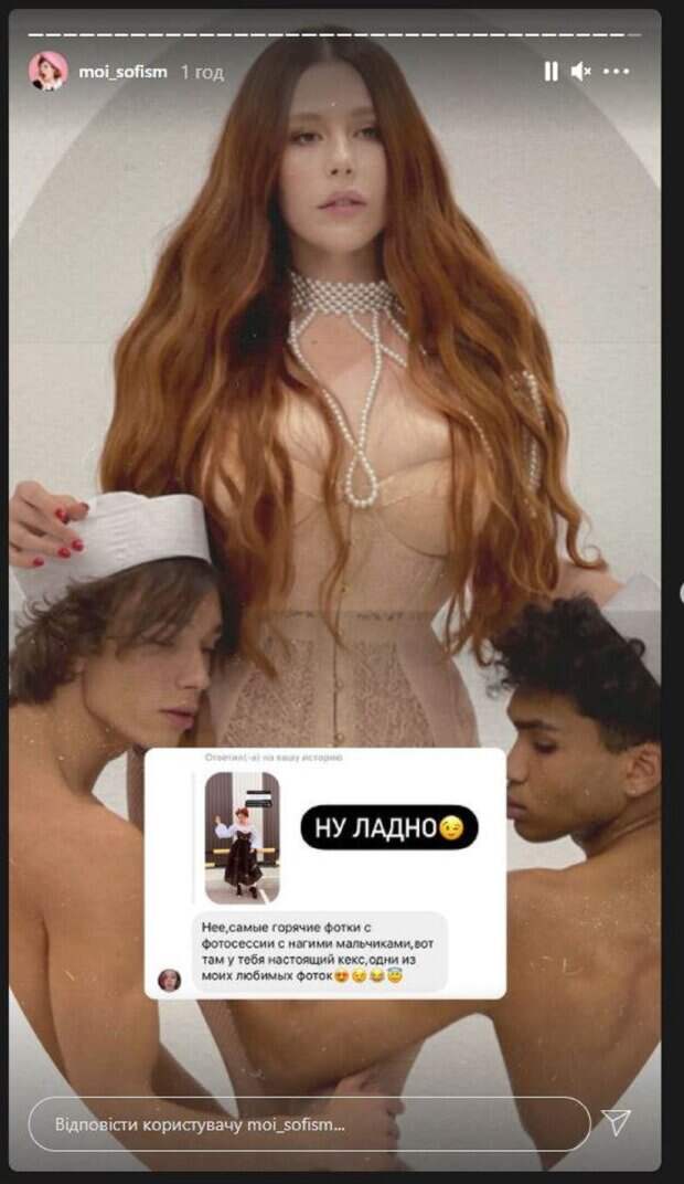 В этот раз Плакидюк вспомнила фотосессию с раздетыми красавцами. Девушка стояла в прозрачном корсете, а мужчины обнимали красотку за ноги. Волосы Соня оставила распущенными, демонстрируя их эффектную длину. "Нее, самые горячие фотки с фотосессии с нагими мальчиками, вот у тебя там настоящий кекс. Одни из моих любимых фоток", - написал фанат в директ Соне. “Ну ладно”, - согласилась Плакидюк. Сообщалось, что фешн-фотограф и судья шоу «Супер топ-модель по-украински» Соня Плакидюк поиграла с образами, доказав, что может быть совершенно разной. Так, Соня позировала в розовом худи, который выглядел несколько растянутым, а также черных штанах. При этом девушка натянула капюшон и показала лицо с минимумом косметики. Напомним, Плакидюк из "Супер топ-модель по-украински" показала, как развлекается с подружкой А еще Politeka писала, что Плакидюк из "Супер топ-модель по-украински" поразила своим чувством стиля Также Politeka сообщала, что Плакидюк из "Супер топ-модель по-украински" задрала платье, показав синяки