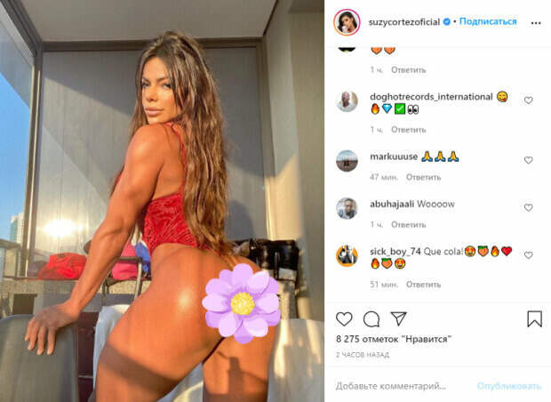 Известная модель Сьюзи Кортес, которая получила титул за самые красивые ягодицы, показала себя на радость фанатов На фото Сьюзи показала себя в красном боди, которое практически не прикрывало пятую точку звезды. Модель развернулась спиной к камере и нагнулась, позируя на фоне дивана. Волосы у девушки были распущены, а руками Кортес взялась за талию.