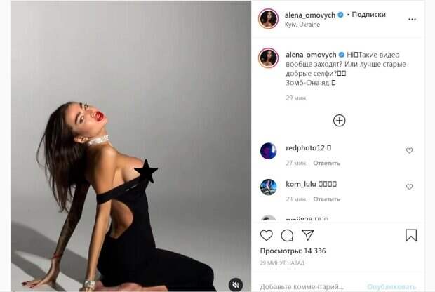 Модель Алена Омович, которую прозвали украинской Кардашьян, в раскованной позе присела на пол и приспустила платье Звезда старается каждый раз удивлять своими жаркими образами, пишет Politeka.net. Красотка с разных ракурсов и в самых горячих нарядах хвастается пышными прелестями. В этот раз Омович записала видео, которое будоражит сознания фанатов.