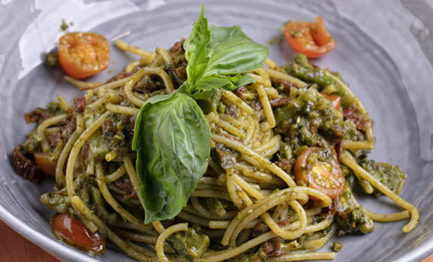 Обычные магазинные спагетти можно за 10 минут превратить в ресторанное блюдо. Мы сварили 80 граммов пасты, а потом добавили брокколи, вяленые томаты и немного чеснока – шикарный обед появился на столе за минуты. Ингредиенты: Спагетти № 12 De Cecco – 80 г Соус песто постный – 40 г Оливковое масло Extra virgin – 20 мл Брокколи […]