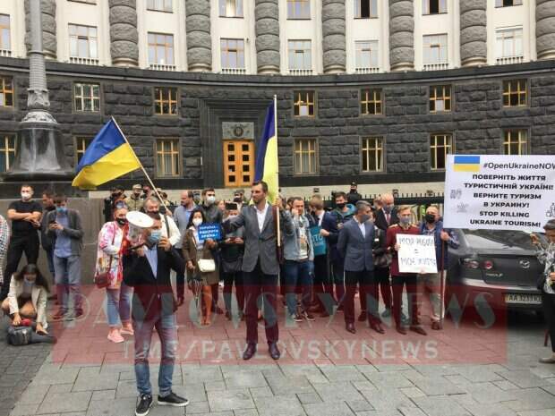 В центре Киева возле Кабмина проходит митинг Представители туристической отрасли требуют пустить иностранцев в Украину. Об этом рассказывает PavlovskyNEWS. Митингующие держат плакаты «Украина – открытая страна», Welcome, «Моя работа = моя жизнь», «Верните туризм в Украине» и требуют отменить решение Кабмина о закрытии границ.