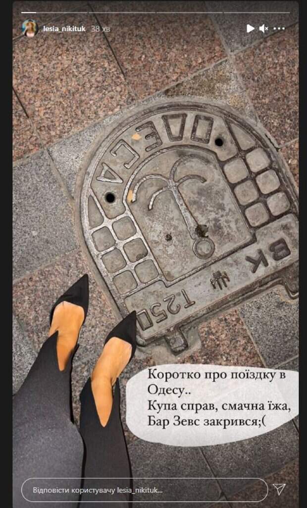 На первом стори Никитюк сняла плитку, показав одесский люк и свои ножки в туфлях. "Коротко о моей поездке в Одессе. Много дел, вкусная еда, бар Зевс закрылся", - написала лаконично Никитюк в сторис Инстаграм. На втором фото Леся уже показала себя полностью. Красотка была в штанах и топике. Красотка выгнулась, демонстрируя точеную фигуру. На последнем фото Никитюк уже сидела за столом. Как можно понять, красотка сидела где-то в заведении и заказала себя большую порцицю устриц с лимоном. Напомним, взлохмаченная Никитюк с красным лицом показала результаты интенсивных тренировок Также Politeka сообщала, что Никитюк в спортивном мини показала, как испытывает себя на прочность в спортзале А еще Politeka писала, что Никитюк покрасовалась на камеру в смелом наряде, показав другую сторону съемок