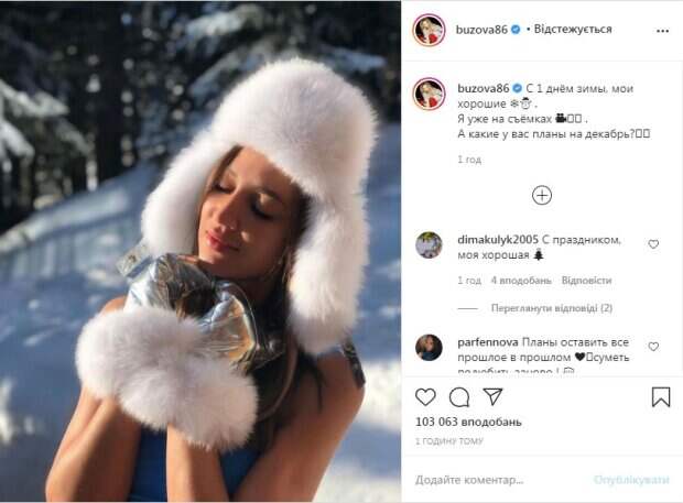 Российская телеведущая и певица Ольга Бузова взбудоражила неожиданным фото на снегу Как пишет Politeka.net, у себя в Инстаграм Ольга опубликовала снимок в связи с наступление календарной зимы. «С 1 днём зимы, мои хорошие . Я уже на съёмках