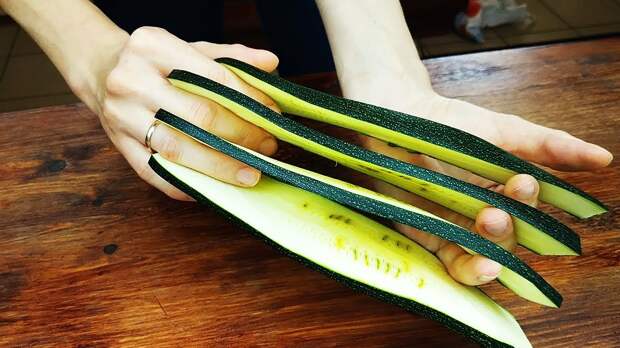 Предлагаем вам приготовить кабачки по этому рецепту. Думаем, что вы по нему еще не готовили. Кабачки еще есть на огороде и по дешевой цене в магазине. Поэтому можете порадовать себя и своих близких недорогим, вкусным блюдом по новому рецепту из кабачков. Продукты: Кабачки (цукини) - 550 гр. У меня 1 средний.