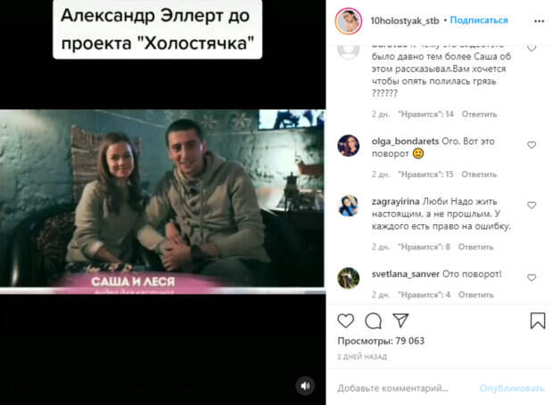 Так, выяснилось, что пара снялась в проекте "Жаннапожени", во время которого они сыграли свадьбу в Сингапуре. Пользователи сразу же заметили, как сильно бывшая возлюбленная Александра похожа на его нынешнюю зазнобу - "Холостячку" Мишину. Многие в комментариях накинулись на Эллерта, мол, гуляет из одного шоу в другое ради пиара. Правда, есть и те, кто встали на защиту парня. "Ксюша - очередное шоу Саши. Жаль, что девочка не созрела к серьезным отношениям..." "Народ, посмотрите интервью Саши на канале Eva, он рассказывал про это. Он был женат, знакомые с телевидения предложили сняться в этом проекте "Жаннапожени", и он хотел сделать приятное своей жене, они были в роли молодожёнов и типа сыграли свадьбу в Сингапуре" "Ого. Вот это поворот