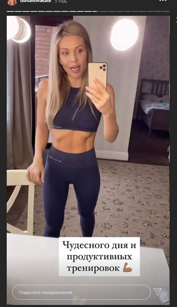 На втором кадре Усманова лежала на коврике для занятий. В этот раз можно увидеть полностью ножки красотки, который были в кроссовках. Екатерина была с гирей и делала упражнение для пресса. Кадр получился увлекательным и мотивирующим. "Пресс", - подписала звезда ролик. Фанаты не ставили лайки и не писали комментарии, но так и хочется добавить: "Дочь Венеры, запредельная мотивация" Мы сообщали, что известная фитнес-тренер Екатерина Усманова показала себя и рассказала об идеальной пятой точке. На фото красотка позировала в топе с вырезом и лосинах. Образ Екатерина дополнила кроссовками и резинкой, которую можно увидеть на ногах. Девушка сидела на коврике для занятий и смотрела в объектив камеры. Сообщалось, что известная фитнес-тренер Екатерина Усманова блеснула формами в новой жаркой фотосессии. Сквозь мелкую сеточку можно разглядеть почти шелковое тело известной блондинки. Звезда поднимала руки и сам наряд, демонстрируя красивую грудь в купальнике шоколадного оттенка. Последний также немного оголил прелести внизу. Напомним, фитнес-тренер Усманова задрала шортики, хвастаясь сокровенным Также Politeka писала, что фитнес-тренер Усманова блеснула своим "соблазном" в тугом топике с декольте А еще Politeka сообщала, что фитнес-тренер Усманова в белоснежном мини устроила жаркую фотосессию посреди поля