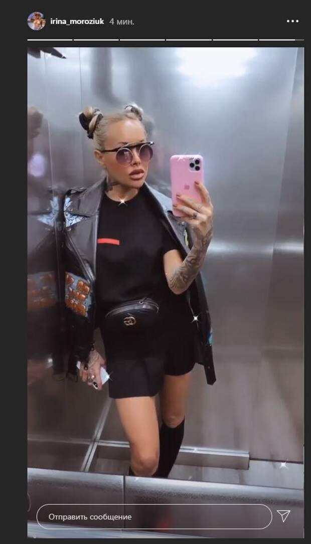 Бывшая жена украинского футболиста Николая Морозюка, бывшего игрока "Динамо", Ирина показала, как встретила понедельник На фото красотка позировала в косухе и мини, дополнив образ стильными очками. Волосы Ирина собрала в два узла, а на ногах можно увидеть длинные чулки. Звезда стояла в лифте, снимая себя на телефон в зеркало.