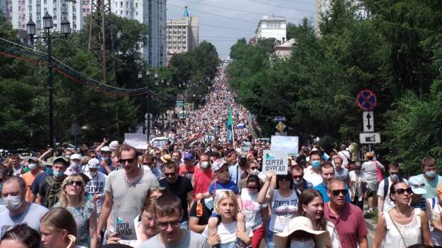 В Хабаровском крае 19 июля прошла очередная акция в поддержку губернатора Сергея Фургала. Напомним, что Фургал был задержан 8 июля по подозрению в организации убийств нескольких предпринимателей. Речь идет о преступлениях, которые были совершены в 2004–2005 годах.