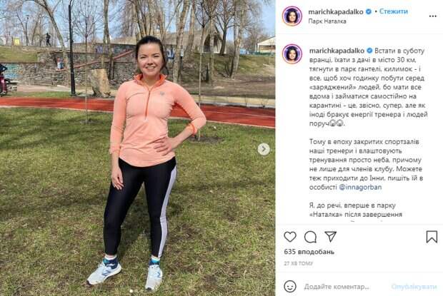Падалко рассказала, что сейчас, когда спортзалы закрыты из-за карантина, тренеры устраивают тренировки под открытым небом. "Я, кстати, впервые в парке "Наталка" после завершения реконструкции - утром это некая "страна грез" улыбающихся и очень занятых собой людей - жителям Оболони грех обходить такой ресур", - написала она. В комментариях фолловеры телеведущей выразили восхищение ее внешним видом и стремлением самосовершенствоваться. "Класс", "Супер, Какая вы молодец", "Красотка какая", "Какая сила воли, по-хорошему восхищаюсь, счастья и любви маленькой и очень сильной женщине", "Гарнюня", "Ну и фигура", - пишут в комментариях. Напомним, Звезда "1+1" Маричка Падалко призналась, как изменила жизнь в 38 лет: «Какая худая...». Как сообщала Politeka, Звезда "1+1" Маричка Падалко ошеломила новым фото без косметики и ретуши: "всю жизнь меня раздражали...". Также Politeka писала, Звезда "1+1" Маричка Падалко вызвала слезы умиления редКим кадром со своим сыном: "только раз в жизни бывает..."»