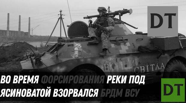 Между Песками и Ясиноватой под мостом через реку на мине подорвался украинский бронеавтомобиль, передаёт корреспондент «Донбасс Сегодня». Ролик с подрывом боевой техники опубликовал телеграм-канал «Ясиноватая Донбасс на линии огня». «Ясиноватский район, Пески, подрыв БРДМ 57 ОМПБр ВСУ 10.01.2018 г два-200-х.