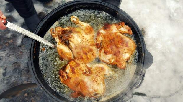 Жареная в кипящем масле курица приобретает совсем другой вкус, его не добиться ни на сковороде, ни в духовке. Раскаленное масло поможет прожарить и мелкие косточки до хруста, а чтобы сделать корочку еще румянее, предварительно замаринуем курицу в довольно необычной смеси безалкогольного пива, муки и специй.