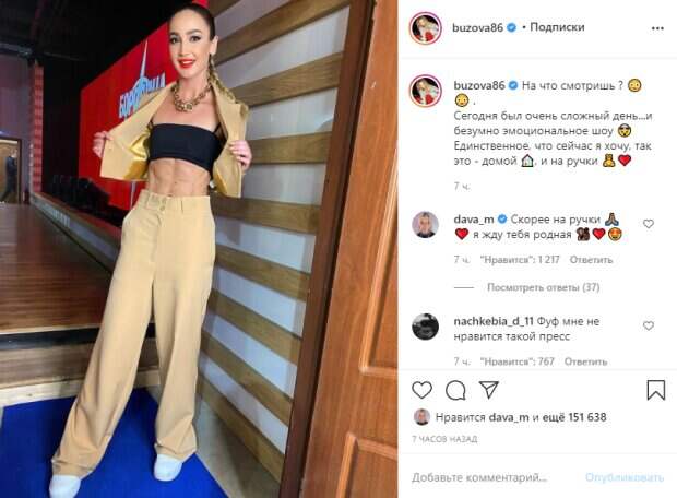 Многие комментирующие полагают, что лучше бы Ольга этого не делала: "кубики" пресса выглядят неестественно, а "сморщенная" кожа на животе аж отталкивает. При этом Бузова довольно улыбалась на камеру, по всему, девушку устраивает ее худощавая фигура. "На что смотришь ?