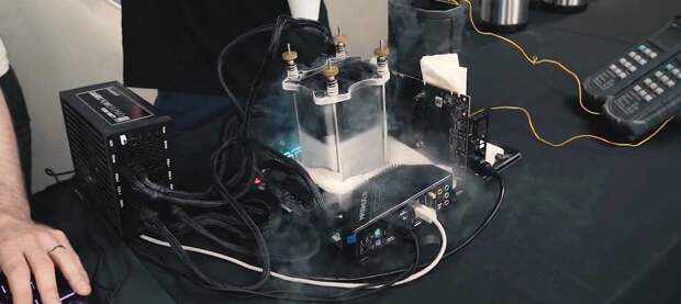Команде польских энтузиастов x-kom совместно с Bethesda удалось разогнать DOOM Eternal до 1000 кадров в секунду. Для этого им пришлось охлаждать не только процессор, но и видеокарту с помощью жидкого азота. А чипы на материнской плате и видеокарте залили чем-то вроде смолы для защиты от воздействия агрессивной среды.