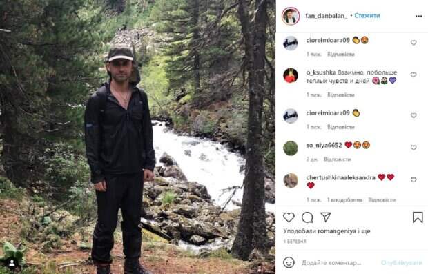 На фото Дан стоит в легком черном трекинговом костюме и кепке с рюкзаком за плечами на фоне горного ручья и леса. Местность напоминает карпатские пейзажи, однако где именно сделан снимок в паблике не сказано. Авторы фан-странички решили поздравить всех поклонников Дана Балана с наступившей весной и пожелать прекрасных мгновений жизни: "Желаю встретить эту весну с большими надеждами и светлыми ожиданиями, с добрыми мечтами и искренними чувствами❤", - от имени Дана написали в паблике. Поклонники сразу откликнулись на фото, приняв поздравления и в свою очередь засыпав Дана Балана комплементами и признаниями в любви. "Наш любимый путешественник, любитель природы. Так, Дан, природа не обидет, ничего плохого не скажет, ей можно доверять как себе. Дыши чистым воздухом, наслаждайся красотой окружающего мира, милый наш романтик", "Такой прикольный", "Он любит гулять в сосновом лесу", "Тут такой простой хлопец, а не тот Дан Балан...", "Как хорошо, как классно вокруг! Такая природа вдохновляет на создание новых шедевров! И снимает усталость, и заряжает энергией!", "Как хочется с тобой по горам и по лесам, я счастлива с тобою, Принц Огня", - написали поклонники. Напомним, что Балан после всех слухов о романе с Кароль заговорил о бесконечной любви: "Нельзя так. .." Как сообщала Politeka, Дана Балана после громкой свадьбы засекли с красотками-блондинками, видео: "Трошки уреканый" Также Politeka писала, что Дан Балан пронзил женские сердца своим фирменным приемом, у Винника появился конкурент: "Шикарный волк!"