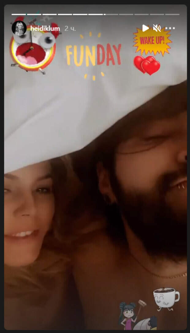 Судя по видео, Хайди спала обнаженной. Чтобы разбудить мужчину, она начла его активно целовать и снимать этот процесс на камеру. Стоит отметить, что Хайди очень часто публикует подобные кадры с мужем, заставляя подписчиков краснеть. Несмотря на большую разницу в возрасте, парочка уже довольно долго вместе. По их совместному досугу видно, что вместе они невероятно счастливы. Их пара – доказательство того, что возраст любви не помеха. Стоит отметить, что после прекрасного утреннего пробуждения парочка отправилась на прогулку со своими огромными псами. Они остановились на мосту и продолжили целоваться, невзирая на погоду. Клум была одета в леопардовые штанишки и теплую шубку. Том же надел черное пальто и шапку. Ранее мы писали, что бесстыжая Хайди Клум улеглась на пол рядом с собакой, забыв надеть одежду. Модель показала свое стройное тело, удивив многих. Напомним, что Хайди Клум в леопардовом белье и ремешках свела с ума своей раскованностью: после такого не уснуть. Как сообщала Politeka, Хайди Клум в одних стрингах довела до приятной дрожи своими формами: "Оставайся в постели". Также Politeka писала, что 16-летняя дочка Хайди Клум распахнула кофточку, заткнув за пояс звездную мать: «После стольких лет…».