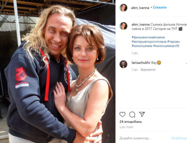 На втором фото Тарзан с распущенными волосами еще крепче прижал к себе немолодую актрису. Она была одета в красивое платье с глубоким декольте. Тарзан обнял ее за талию, а головой прижался к ее голове. Фото явно не выглядело, как снимок артиста с поклонницей. «Съемка фильма Ночная смена в 2017», - подписала фото актриса. Судя из подписи, фильм был снят три года назад, но фото женщина решила вновь обнародовать сейчас. После многочисленных заявлений женщин об изменах Тарзана своей супруге, такие фото выглядят весьма компрометирующее. Не исключено, что Наташе Королевой снова нужно переживать. Как известно, в 2020 году российский шоу-бизнес всколыхнула новость о том, что Тарзан изменил Наташе Королевой, с которой прожил в браке 17 лет. Любовницей стриптизера оказалась молодая актриса Анастасия Шульженко, которая обнародовала видео, подтверждающее измену. Напомним, что Королева и Тарзан показали страстное воссоединение после скандала, певица не сдержалась: "Не предавайте, это больно". Как сообщала Politeka, муж Наташи Королевой без футболки осрамился на новом фото: "Это пародия на Тарзана?". Также Politeka писала, что Тарзан стянул штаны вместе с трусами, опозорившись новым фото: "Какой мерзкий тип. ..".