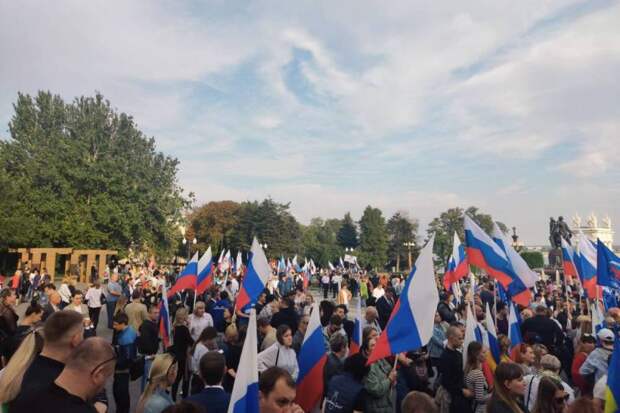 Торжественный митинг-концерт в поддержку итогов референдумов о вхождении в состав России территорий ДНР, ЛНР, Запорожской и Херсонской областей прошел на верхней террасе набережной Волгограда. Об этом сообщает пресс-служба регионального отделения партии "Единая Россия".