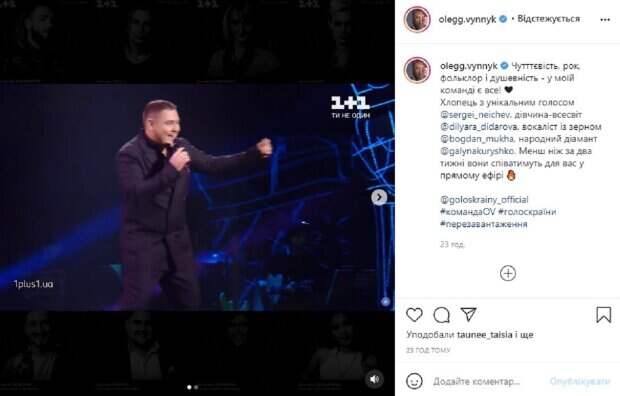 Популярный песенный проект "Голос країни" продолжает радовать поклонников, которые следят за любой новостью об участниках проекта, в этот раз Олег Винник немного рассказал о своей новой "семье" Как передает Politeka.net, в своем Инстаграм Олег рассказал, кто наполнил его команду. Винник пишет: "Чувственность, рок, фольклор и душевность - в моей команде есть все!