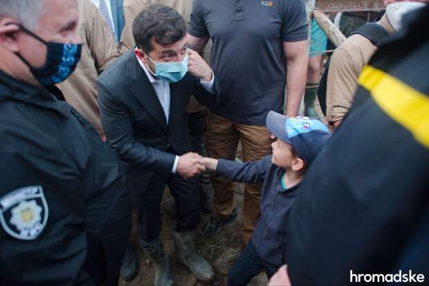 «Чоботи! Чоботи!» — кричить один з охоронців, — «Чоботи президенту!». Місцевий чоловік швидко знімає свої, віддає, охоронець біжить до президента”, — розповіли журналісти. Водночас, як чоловік, який виручив президента, сам обійшовся без чобіт, не уточнюється. Нагадаємо, вчора, 25 червня, глава держави навідався у Ланчинську ОТГ гелікоптером та одразу на позашляховиках вирушив на оглядини села. Там поспілкувався з місцевими мешканцями. Читайте також: Володимир Зеленський оглянув наслідки повені на Прикарпатті (ФОТО)