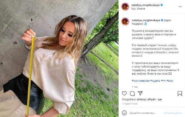 На новом снимке Наташа запечатлена на улице, она стоит у торца здания и как будто измеряет себя рулеткой. Перед камерой звезда появилась в стильном образе – на ней светлое платье интересного фасона с широкими рукавами, поверх которого надела оригинальный черный корсет на талию. Ее волосы распущены и аккуратно уложены, а на лице яркий макияж и густые наращенные ресницы. В подписи к фотографии Могилевская написала: "Дарю подарок! Пишите в комментариях: как вы думаете, с какого веса я стартую и начинаю худеть? Кто первый угадает точную цифру, подарю эксклюзивный подарок, без которого никуда в борьбе с лишним весом. Я прочитала все ваши комментарии и хочу поблагодарить за вашу поддержку, за ваши комплименты! Я вас люблю! Вместе мы сила". Напомним, Могилевскую очаровал молодой красавчик, флирт попал на камеру: "Ну может чуть-чуть". Как сообщала Politeka, Похудевшая Могилевская раскрыла свой секрет борьбы с лишним весом: "Мой вариант – это полный отказ от...". Также Politeka писала, Могилевская раскрыла, кем ей на самом деле приходится мужчина, с которым ее засекли папарацци: "Он...".