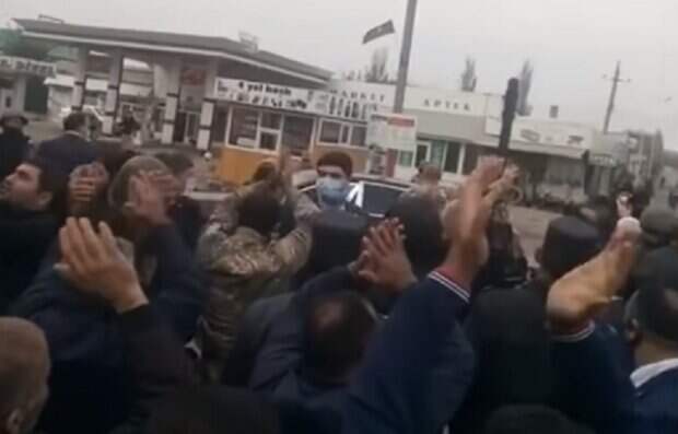 "Президент Азербайджана Ильхам Алиев прибыл с визитом в Горадиз в Физулинском районе Нагорного Карабаха, который перешел под контроль азербайджанской армии. Встречают как национального героя, люди очень рады такому событию", - говорится в подписи к видео. На опубликованных кадрах можно увидеть бурную реакцию окружающих на визит Алиева. Глава государства в военной форме появился на одной из машин, приветствуя собравшихся поднятой вверх рукой. Толпа людей окружила машину и аплодировала Алиеву, скандируя: "Карабах!". Как известно, бои, которые длились более месяца в Карабахе, закончились капитуляцией Армении и возвращением большей части территории под контроль Азербайджана. Данное решение было зафиксировано в соглашении, подписанном между сторонами конфликта. Напомним, армянские солдаты атаковали россиян в Карабахе, видео: "отказались покидать регион". Как сообщала Politeka, Россия заводит в Карабах танки и "Грады", видео: "договоренностями не предусматривалось". Также Politeka писала, что колонну российских миротворцев в Сирии атаковали местные жители: эпические кадры.