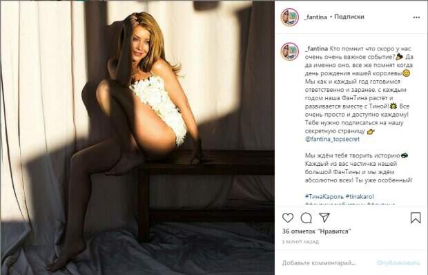 Популярная украинская певица Тина Кароль в очередной раз изумила соблазнительной фигурой Так, новое фото опубликовал один из фан-клубов исполнительницы, пишет Politeka. На снимке Тина сидит на низенькой скамейке, одной рукой опираясь на нее. Бросается в глаза то, что на певице - лишь тонкий белый пеньюар, ноги звезды обнажены, также не прикрыты тканью шея и плечи Кароль.