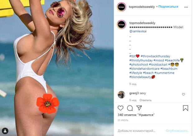 Кадры, на которых Лекси позирует в бикини на пляже или просто на отдыхе на природе, всегда собирают больше всего отзывов и комментариев, ведь девушка выглядит очень соблазнительно. В белом монокини без каких-либо принтов и модных рисунков, девушка выглядела очень стильно и сразу привлекла внимание к себе: «Это очень круто фото», «Meravigliosa