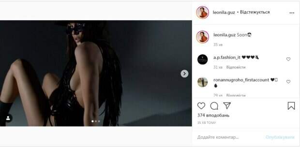 На ногах у нее массивные берцы, а на голове – шляпа. Дополняют образ солнцезащитные очки. Гузь позировала в разных позах. На одном из фото она сидит в пол-оборота и хищно смотрит в камеру. При этом можно заметить, что платье не полностью прикрывает ее грудь. Похоже, модель едва не выронила выдающиеся формы. На другом фото модель лежит, задрав ногу вверх. На третьем фото Гузь позирует, присев. Ранее Леонила Гузь соблазнила видом в пиджаке на голое тело. Модель позировала в белых джинсах, которые игриво расстегнула на поясе. Джинсы были заправлены в грубые ботинки, которые придали образу особого шарма. Сверху на Леониле Гузь был надет пиджак, который едва прикрыл обнаженную грудь красотки. Девушка наклонила голову и смотрела вниз. Напомним, "Мисс Украина" Леонила Гузь прикрылась прозрачными простынями, воплощая самые сокровенные мечты А еще Politeka писала, что "Мисс Украина" Леонила Гузь поманила к себе чувственным взглядом. Также Politeka сообщала, что Мисс Украина Леонила Гузь в платье без белья соблазнила взглядом.