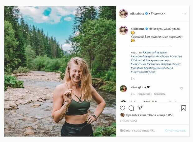Известная украинская актриса Екатерина Никитина, звезда "Квартал 95" показала свою прогулку по красивым местам На фото красотка позирует в зеленом топе и черной юбке. Никитина улыбается на камеру, стоя среди горной речки, которая бежала среди леса. Волосы Екатерина оставила распущенными, демонстрируя всю свою красоту.