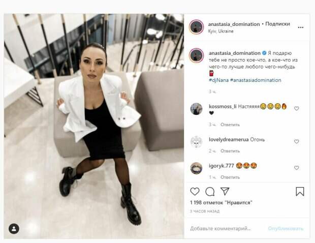Известная певица Анастасия Кумейко, бывшая солистка группы Nikita, показала себя и рассказала о подарке На фото Кумейко позировала в берцах, платье с декольте и пиджаке белого цвета, который решила оставить расстегнутым. Волосы у красотки были собраны назад, а снимали звезду сверху и можно оценить не только фигуру, но и бюст из выгодного ракурса.