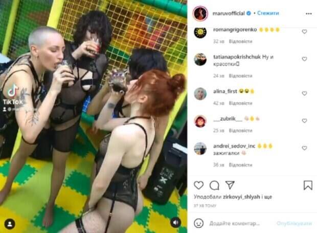 Певица опубликовала кадры, на которых вместе с подругами выпивала и неприлично себя вела в игровой. При этом девушки были одеты в нижнее белье. Кадры вызвали бурю негодования в сети, но Корсун уже давно привыкла к негативу, который сопровождает ее на протяжении всей карьеры. Похоже, певица нередко использует черный пиар для подогрева слухов о своей персоне. Практически сразу после скандала вышла новая видеоработа певицы, эксклюзивными фото с которой она поделилась в сети. На снимке она засветила оружие, аккуратно спрятанное в чулке. «Спасибо всей команде за этот клип», - подписала фото певица. В комментариях певице оставили массу отзывов. «Maruv Богиня», «Клип один из лучших, очень нравится. Стилистика на высоком уровне с щепоткой перчика, и огромной энергетикой», «Очередной ШЕДЕВР от Марув. И трек, и визуал на высшем уровне», «Ох, девушка-огонь», «шикарнейший клип! вкусный очень», «О, как красиво», - пишут пользователи сети. Напомним, что MARUV покрасовалась перед фотографом в кружевном комплекте, едва прикрывшись халатом: "Богиня". Как сообщала Politeka, MARUV жестко разнесли после вульгарной выходки в детской комнате, видео: "Противно смотреть". Также Politeka писала, что MARUV закатила "тайную" вечеринку с подружками, кадры: "Отработали лавэ и погнали на тусэ".