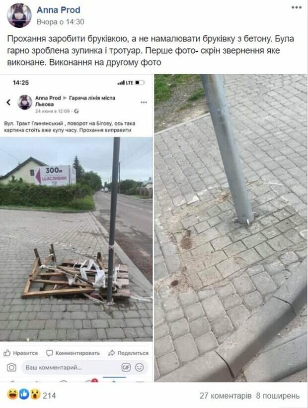 девушка опубликовала фото, на котором видно, что часть без брусчатки закрыли деревянными досками. Спустя 2 недели она показала результат выполненной работы. "Просьба закрыть брусчаткой, а не нарисовать брусчатку из бетона", – написала львовянка. Ранее мы писали, что глава правительства Денис Шмыгаль заявил о перераспределении более 45 миллиардов гривен, перечислив, кому достанутся эти средства У себя на Фейсбук-страничке Шмыгаль поделился отчетом министра финансов, который был заслушан на днях на заседании Кабмина. В частности, речь шла об использовании средств Фонда борьбы с китайским вирусом, а также упомянутом выше перераспределении, которое было предварительно одобрено. По информации премьер-министра, из 45,7 млрд гривен: 35 млрд грн пойдут на ремонт и реконструкцию дорог; 7,8 млрд грн - на доплаты медикам и отдельным категориям работников, обеспечивающих жизнедеятельность населения; 2,9 млрд грн - на закупку оборудования для приемных отделений опорных учреждений здравоохранения в госпитальных округах. Напомним, кардинальное решение по кредитам принято: за что украинцам разрешили не платить. Как сообщала Politeka, прожиточный минимум в Украине резко вырастет, в Раде сделали срочное заявление: «Составит не менее 50%. ..» Также Politeka писала, что Нацбанк предупредил о важных изменениях, которые коснутся выплат.