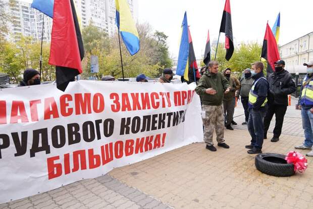 «Но поскольку он не имеет яиц, чтобы пообщаться с общественностью и прессой - мы принесли ему яйца», - заявил Турчин. Также активисты разложили у входа в Фонд госимущества покрышки как символ площади и отстаивание гражданской позиции. Однако полиция и представители ФГИУ, по словам Даниила Турчина, сильно боятся этого, и всеми способами пытаются не допустить подобных протестных акций. «Так как в Фонде госимущества снова обманули нас и журналистов, всю общественность, мы оставляем за собой право в дальнейшем применять более радикальные действия. Мы не имели военного опыта и мышления во время Майдана, но на войне мы получили различные навыки и умения. И в дальнейшем мы перейдем к более решительным действиям», - заявил Даниил Турчин. Один из активистов, протестует против разрушения завода «Большевик», заявил, что готов совершить акт самосожжения, если чиновники и ответственные лица снова игнорировать требования граждан. Напомним, сегодня во время акции под ФГИУ Даниил Турчин заявил, что представители Фонда отказались общаться с представителями СМИ по дальнейшей судьбе завода Большевик. Причиной пикетов стала скандальная ситуация вокруг предприятия: в решении о приватизации завода полностью не соблюдаются права трудового коллектива и остается непонятной его дальнейшая судьба после аукциона. При этом Фонд госимущества как ответственный за эти проблемы, отказывается встречаться с общественностью и медиа для освещения вопроса, а несколько последних дней в интернете начали массово распространять информацию, будто сами работники завода выступают за его расформирования и приватизации, не соответствует действительности. Сами же работники предприятия неоднократно отправляли в государственные инстанции запросы и обращения с просьбой прекратить разрушение завода, хищения его имущества и сообщали о целенаправленном искусственное банкротство оборонного предприятия. Однако никакой реакции властей нет. Напомним, на днях активисты перекрывали улицу Гарматную с требованием не допустить разворовывания «Большевика». Также они установили блокпост на выезде из предприятия с целью помешать вывозу и распила на металлолом оборудование завода. Также один из работников завода вышелна одиночный пикет против уничтожения предприятия, призвав председателя ФГИУ Сенниченко к диалогу.