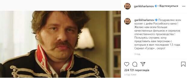 Желание режиссера – закон!», - было прописано в коротком ролике. Как известно, после карантина Харламов и Кристина Асмус объявили о разводе. Однако, судя по всему, развод не помешал комику вернуться к своей старой работе и вновь возобновить съемки в комедийных фильмах. «Поздравляю всех коллег с днём Российского кино ! Желаю нам всем больше качественных фильмов и сериалов отечественного производства ! Пользуясь случаем, хочу представить вам персонажа, с которым я жил последние 1,5 года. Сериал «Гусар», скоро!», - подписал ролик Харламов. В комментариях бурно отреагировали на новый образ комика и новость о сериале. «Харламов ты любимый юморист!», «Интересно, а раньше гусары тоже были такими упитанными», «Правило Харика №1 прохрапеть весь день в кровати пока все трудятся на съёмочной площадке», «Шампанское, бабы, разврат! Всё то, чего не хватало в жизни! Сериал "Гусар", скоро!», «Гарик уходи оттуда», «Неожиданно», - пишут пользователи сети. Напомним, что Гарик Харламов впервые показал своих детей вне брака, в сети фурор. А еще Politeka писала, что развод Кристины Асмус с Харламовым: всплыли пикантные подробности, "пытается скрыть...". Также Politeka сообщала, что фигуристая Яна Кошкина выгнулась на кровати, выпятив главную гордость: "Харламов, спи спокойно".